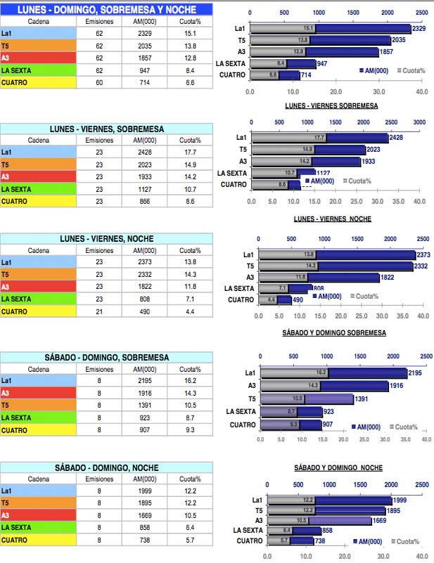 Barlovento Comunicación tiene en cuenta, como siempre, las emisiones de más de 10 minutos de duración a la hora de realizar su análisis habitual.