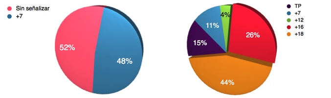 La Asociación de Consumidores de Medios Audiovisuales de Cataluña (TAC) ha analizado un total de 63 programas de televisión entre los que se encuentran las cadenas: La 1, Antena 3, Cuatro, Telecinco, laSexta, TV3, Neox, FDF y MTV. Según el estudio 49 de esos espacios, es decir, un 78% del contenido emitido en horario de protección infantil no es apto para los más pequeños de la casa. El análisis se centra en la "franja de protección reforzada de tarde" lo que comprende los contenidos emitidos de 17 a 20 horas.