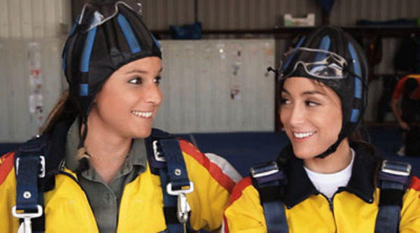 Como aperitivo, la cadena ha hecho pública la primera imagen del programa, una instantánea en la que se ve a una Tamara Falcó muy aventurera (derecha) con su buena amiga Scilla Ruffo di Calabria, princesa DJ, (izquierda) a punto de lanzarse en paracaídas.