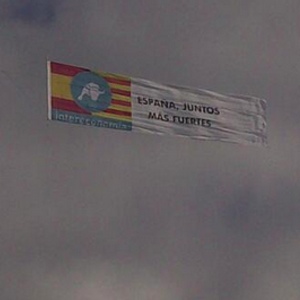 Este miércoles, 11 de septiembre, se ha celebrado en Barcelona la manifestación por la independencia bajo el lema: "Vía catalana para la independencia". En ella, miles de personas se han reunido y formando una cadena humanada para defender el independentismo catalán. Durante esta movilización, la cadena de televisión Intereconomía decidió alquilar una avioneta para sobrevolarla con una pancarta que rezaba: "España: Juntos, más fuertes".