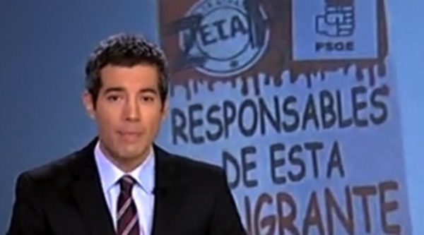 TVE ilustró la noticia con una pancarta que acusaba a Zapatero