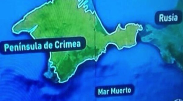 En la imagen se puede ver cómo Vicente Vallés explica la información al lado de un mapa en el que el mar Muerto se ha visto desplazado hasta Crimea y Rusia. De este modo, donde debería estar una etiqueta que indique al mar Negro se encuentra señalado el mar Muerto.