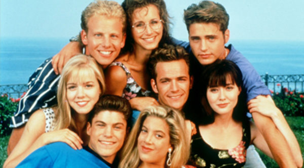 Todo empezó con la llegada de los hermanos Brandon (Jason Priestly) y Brenda (Shannen Doherty) a Beverly Hills. Ambos se matricularon en el West Beverly Hills High School donde se harían íntimos de Dylan (Luke Perry), Kelly (Jennie Garth), Steve (Ian Ziering), Andrea (Gabrielle Carteris), David (Brian Austin Green) y Donna (Tori Spelling). El reparto original al completo no estuvo presente durante las diez temporadas de la serie, algunos de ellos fueron abandonando la ficción y otros regresaron más adelante.