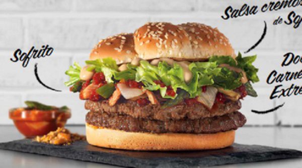 Los clientes del conocido local ya pueden disfrutar de esta creación que incorpora como ingredientes novedosos un sofrito tradicional con tomate, cebolla, espárragos y setas, crujiente de maíz tostado, salsa cremosa de soja y lechuga Batavia, además del doble de carne 100% extremeña y el pan característico de sus hamburguesas tradicionales.