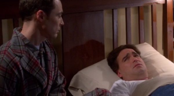 No obstante, Sheldon culpa a Leonard de tener la nariz rota: si ambos están convalecientes es porque tomó la decisión equivocada al operarse. Metido de lleno en el drama y con voz nasal debido al golpe, llega a afirmar que no sabe si le duele más la nariz o el corazón. Pero como Leonard apunta, el único culpable de haberse roto la nariz es el propio Sheldon. ¡Adora tanto a Leonard que no mira ni por dónde va para acudir en su ayuda! De hecho, al físico aún le preocupa que su amigo no se recupere bien de la operación.