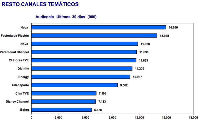 Neox ha conseguido convertirse -según EGM- en el canal más visto de la Televisión Digital Terrestre, adelantando a FDF el líder indiscutible de la medición de datos de Kantar Media. Nova se sitúa como tercera opción de los encuestados y Paramount Channel como quinta, pese a ser octava en los datos aportados por Kantar Media.
