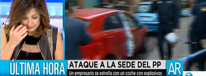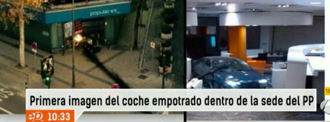 Un coche que podría tener explosivos se empotra contra la sede del PP en Madrid. Los TEDAX se han trasladadoa la zona http://t.co/B3yk8BqZmk