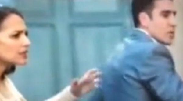 En la escena se puede ver como dentro de una pelea al actor se le va el puño y acaba golpeando la cabeza de Peter vives. "Suerte que ha sido con la izquierda", recalca Miguel Ángel Silvestre. Y enseguida acuden a atenderle.