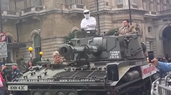 El vehículo militar, que portaba el mensaje "Bring back Clarkson, circuló por la ciudad de Londres y finalmente estacionó frente a la sede de la emisora pública ante la atenta mirada de turistas y trabajadores que se detuvieron a fotografiar la escena.
