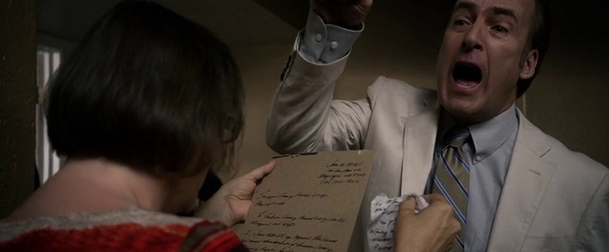Recomponer las hojas es tarea imposible para James, por lo que, tras separar las tiras por colores, se da por vencido. Por suerte, para Chuck, a quien le sobra el tiempo y no puede salir de casa debido a su enfermedad inventada, hacer puzzles con los trozos de papel es un hobbie y ese mismo día ya tiene varias páginas finalizadas. Todo apunta a que los hermanos trabajarán al fin juntos en un caso. La única que por el momento lo sabe es Kim Wexler. La abogada de HHM se encarga de ayudar desde dentro a Jimmy y Chuck, usando los recursos de la empresa.