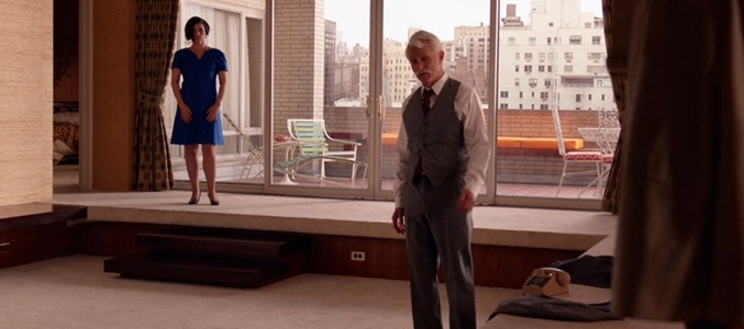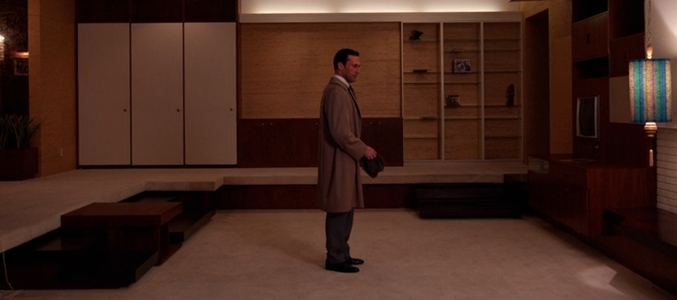 La simbología está clara: ni Betty, ni Megan ni sus conquistas... Don ha llegado a una edad madura en la que además de no estar acompañado por nadie ni siquiera su casa aguanta la situación. Su vida se está quedando vacía de elementos y la falta de muebles es un recurso visual de ese sentimiento de abandono que sufre Draper en estos momentos.