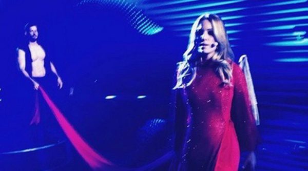No es la primera vez que se hace en Eurovisión, pero sí en España. Edurne a mitad de la actuación sorprende cambiando de vestido. El cambio de look va acompañado también de una escenografía de colores distintos. Como se puede ver en la segunda parte apuesta por un estilismo helénico.