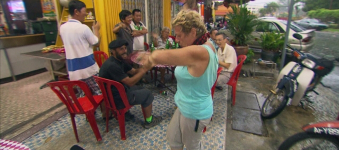 El vasco y la andaluza se hicieron con la inmunidad, lo que les aseguraba el pase a la siguiente etapa. Así, pudieron recorrer el resto de la carrera con más tranquilidad. Dieron con un grupo de malayos en un bar bebiendo cerveza y comiendo, y decidieron unirse.