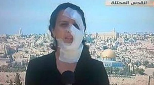 Una periodista de televisión ha vuelto a ponerse delante de las cámaras con su cara vendada después de haber sido alcanzada por un proyectil que ha sido disparado en un choque entre la policía israelí y los manifestantes en el este de Jerusalén, según ha informado Independent.