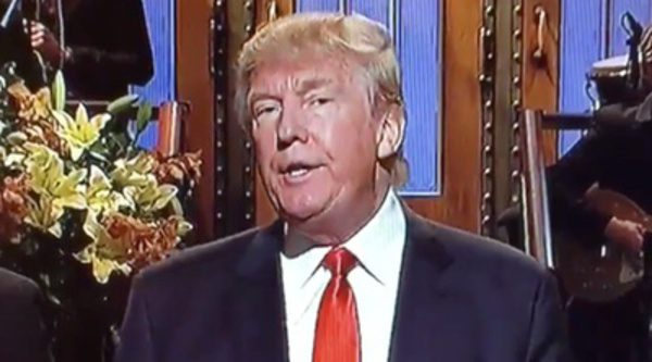 Durante una parodia con el presidente de México, Enrique Peña Nieto, entregándole a Trump un cheque con el pago sobre el muro que hace meses prometió construir entre México y Estados Unidos para evitar el ingreso ilegal de inmigrantes, y que Trump aseguró pagaría México, participó Larry David. El humorista llegó a gritarle "racista" en directo, un improperio que Donald recibió con humor, demostrando elegancia y saber estar en su respuesta al cómico.