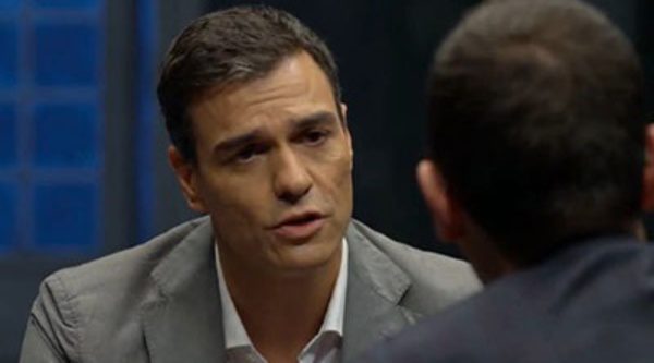 Aunque fuera grabado con anterioridad, Risto Mejide le preguntó directamente a Pedro Sánchez cuál era su opinión con el último movimiento en el que el independentismo catalán aprobaba comenzar con la ruptura con España. El líder del PSOE tiene claro que toda esta situación se deriva de una razón, la inexistencia del entendimiento: "Parece como si hubiera muchísima gente interesada en la confrontación. Mas busca fijar la imagen en Rajoy y su proyecto, y también en Moncloa solo han hecho coger el teléfono y llamar. Algo tan básico como el diálogo parece haberse perdido".