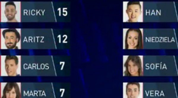 Los familiares y amigos de los concursantes nominaron a la cara, y la lista definitiva quedó con Ricky, Aritz y Marta como nominados, tras salvar el padre de Carlos a su propio hijo, que también entró en la terna provisional. Así repartieron los puntos ante el asombro de los concursantes: