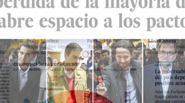 El cuadro que dibujan las televisivas elecciones del 20D es el más inconcluso que han dejado nunca unas votaciones generales en España. El futuro del gobierno está en manos de las duras y complicadas negociaciones que se lleven a cabo por los principales partidos políticos en los próximos días.