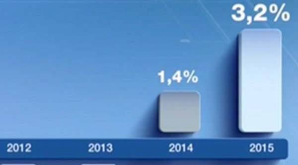 A simple vista parece España va muy bien, con una enorme barra de crecimiento en el año 2015. Pero si nos fijamos en los números, comprobamos cómo TVE ha vuelto a inventarse la escala para maquillar los datos.