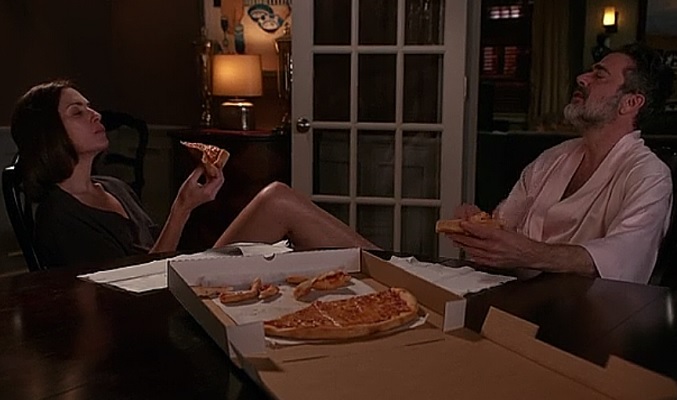Ese domingo de amor, sinceridad y pizzas, sin una sola gota de alcohol, se ve interrumpido por la histérica irrupción de Verónica (Stockard Channing), la madre de Alicia. Está muy alterada porque ha sido "Madoffeada", que en castellano significa algo así como "Bankiado". El disgusto se le pasa cuando irrumpe en el piso, y dormitorio, de su hija pillando a Jason desnudo bajo las sábanas de la cama de Alicia. No tarda en llegar el hermano de ésta, Owen (Dallas Roberts), con unos bagels, tras haber sido convocado ante la crisis familiar.