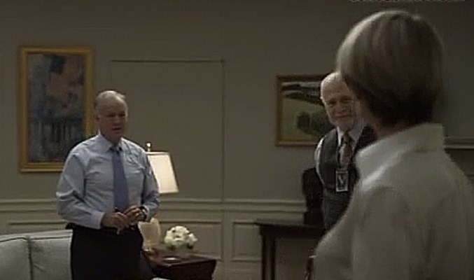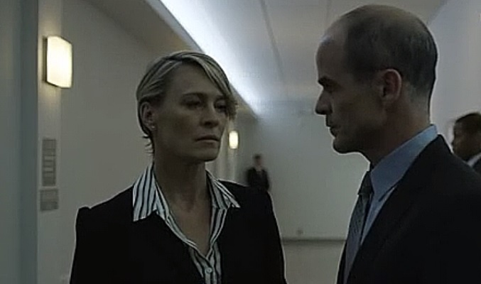 Claire se hace la indignada, o la tonta, cuando Doug le cuenta lo que Blythe le dijo a Petrov acerca del estado de Frank. Toda la escena nos hace pensar que lo que la primera dama quería, aparte de sentirse importante, era forzar que la noticia se filtrara para así poder informar, siendo ella la mensajera, al pueblo americano del estado del presidente.