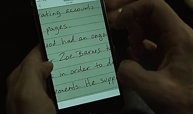 Lucas sabía lo que iba a ocurrir tras su primer disparo por lo que dejó una especie de nota de suicido en su casa en la que lo cuenta todo. Habla de Zoe, de Peter Russo e incluso nombra a Rachel. Esto incrimina a Frank y a Doug, que se pone terriblemente nervioso cuando ve el nombre de ésta última.