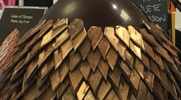 Durante más de 6 horas, varios empleados de los grandes almacenes de Selfridges en Londres estuvieron montando una réplica de los huevos de dragones de Daenerys en chocolate... y en tamaño gigante. Más de 15 kilos de chocolate acabó pesando el huevo que ha estado expuesto al público, que ha podido hacerse un selfie con preciado objeto promocional... e incluso probar un trozo.