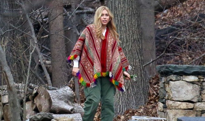 Miley Cyrus se encuentra ya rodando su próxima serie para Amazon, la que será la primera ficción de Woody Allen para televisión. La actriz y cantante ha sido vista en el set de rodaje en Westchester (Nueva York), donde ha sido fotografiada con el look de su personaje, como recoge GotCeleb, luciendo melena larga rubia y un llamativo poncho.