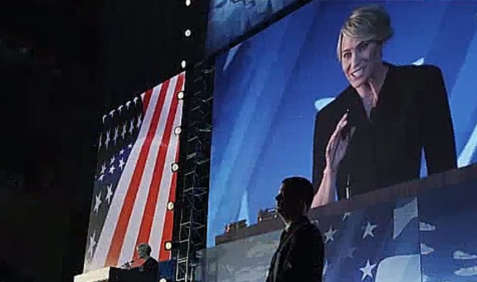 Sí, Cathy ha entendido a la perfección el mensaje de Frank: renuncia a cualquier opción de ser presidenta o vicepresidenta y da su apoyo a Claire. La muerte de la madre de la primera dama ha sido bastante oportuna. Silencia a Conway, que deja atrás las críticas y se limita a dar el pésame, y da el toque emotivo al discurso que da en la convención demócrata. Declarada ya oficialmente como candidata a vicepresidenta, a mano alzada y por aclamación, saluda a la masa demócrata junto a su marido. Underwood-Underwood 2016.