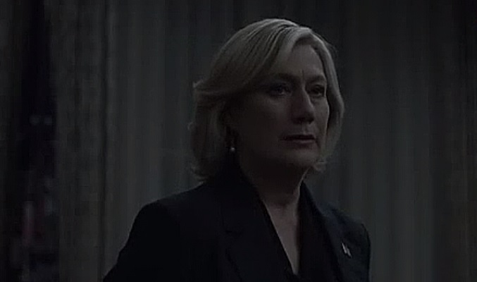 La última discusión entre Cathy y Frank se produce en el despacho oval. Sobre una de las mesas de la sala está un periódico que lleva en portada unas declaraciones de Petrov admitiendo la historia que da el protagonismo a Claire en las negociaciones con Rusia. La verdad está de su parte aunque tenerla nunca fue un factor necesario para que Frank se termine saliendo con la suya. Así, en mitad de tanta tensión, el presidente empieza a confesar los asesinatos de Barnes y Russo, tras haber hablado de las alucinaciones que tuvo con ellos cuando se debatía entre la vida en la muerte.