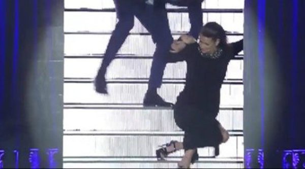 Laura Matamoros se cae de la escalera al entrar al plató de #FinalGHVIP pic.twitter.com/iI1NR1lP3C