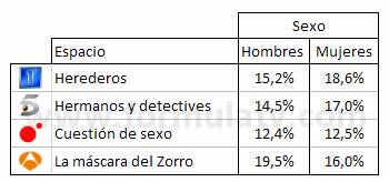 · Buen arranque de 'Herederos' (17%) y 'Cuestión de sexo' (12,4%)