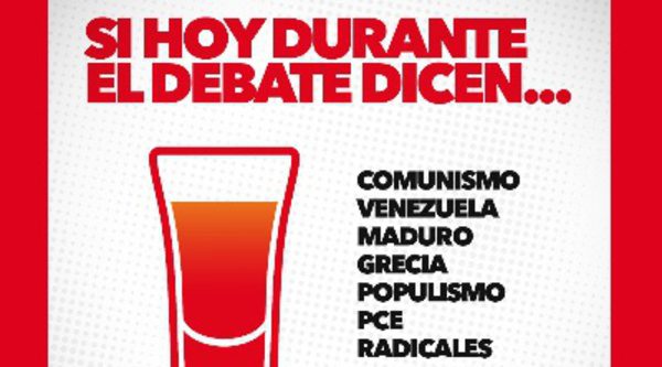 Pero las casillas recogen además una serie de términos que tanto el Partido Popular, el PSOE como Ciudadanos emplearon una y otra vez durante el pasado debate del mes de diciembre (Soraya, Sánchez, Rivera e Iglesias) y que han seguido utilizando también durante la precampaña actual para atacar directamente a Unidos Podemos. Palabras como "comunismo", "Venezuela", "maduro", "Grecia", "populismo", PCE", "radicales" o "extremistas" llevarán a los jugadores del "Bingo del debate" a saciar una y otra vez su sed.