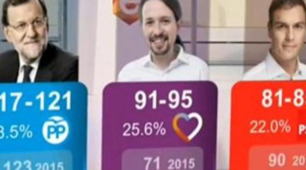 Un sondeo que prácticamente no acertó ningún resultado. La encuesta de TVE/FORTA pronosticó entre 91 y 95 escaños para Podemos, que finalmente quedó como tercera fuerza política tras lograr 71 escaños. Ciudadanos se desplomó hasta los 32 escaños, pero no cayó hasta los 26-30 escaños que le auguró el sondeo a pie de urna de Sigma Dos. El voto oculto también dejó en evidencia los 117-121 diputados que le dio la encuesta al PP, frente a los contundentes 137 de los resultados finales.