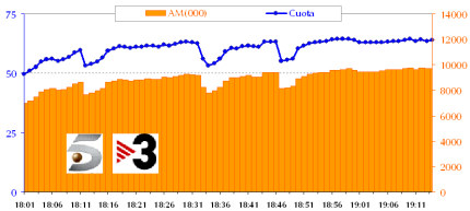 Telecinco volvió a encontrar un filón en la Fórmula 1, cerrando la jornada de ayer con un 27,7%, su mejor guarismo diario desde el 20 de marzo de 2004. De esos 27,7 puntos, 12 vinieron directamente proporcionados por la Fórmula 1: 3,2 puntos de la previa, 6,8 puntos de la carrera propiamente dicha y 2,3 puntos de las celebraciones posteriores.