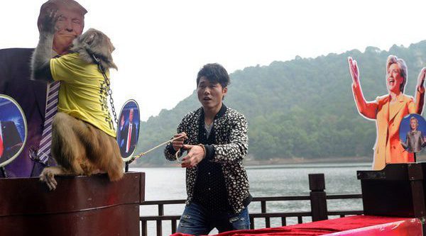 Los estadounidenses ya pueden votar a conciencia: Geda, un mono profeta de China, ha convertido a Donald Trump en el nuevo presidente de Estados Unidos. El primate, después de pensárselo durante unos segundos, decidió comerse los plátanos que le habían escondido tras una estampa del republicano y rechazó aquellos que se ocultaban detrás de Hillary Clinton.