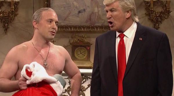 ¿Se ha portado bien Trump con el presidente Ruso? Pues parece ser que sí, o al menos eso se deduce del sketch de 'SNL'. En él, Vladimir Putin, descamisado como siempre, se deja caer por la chimenea de la casa de Trump con un saco lleno de regalos. Y no solo regalos; Putin se deshizo en elogios al hablar del republicano, al que describió como "el mejor candidato", "el más inteligente" y "el mensajero del miedo".