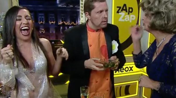 Los presentadores explicaron los pasos de las Campanadas con comida: el carillón con una botella de anís y los cuartos cortando un pollo. El plato estrella vino con las Campanadas, que no se comieron las tradicionales uvas, sino que los espectadores de Neox decidieron que lo cambiaran por pimientos de padrón.