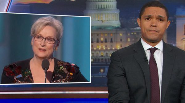 Sería tendencioso decir que a Trevor Noah no le gustó el apasionado discurso de Meryl Streep. En realidad, el presentador hizo un balance muy positivo de las palabras de la actriz. "La verdad es que si te quedas en esa parte del discurso pierdes lo más grande. Fue un discurso sobre el respeto, sobre la empatía. Y, lo que es más importante, fue un discurso sobre la responsabilidad", concluyó Noah.