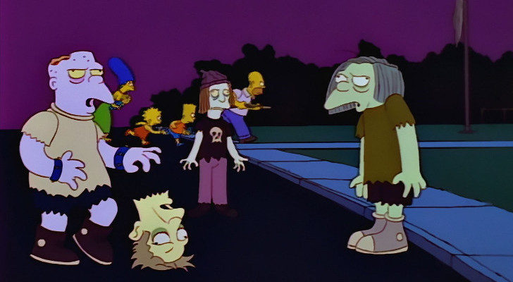 Uno de los capítulos de Halloween más emblemáticos de 'Los Simpson' (¿acaso no son míticos todos los primeros 100 capítulos de la serie?) fue La casa del árbol del terror III. En homenaje a los clásicos del género zombie, como 'La noche de los muertos vivientes', la familia Simpson se veía atrapada entre los zombies de Springfield, a los que Bart sacaba de las tumbas por medio de un maleficio. Aún no eran los zombies infectados que están en auge hoy en día, pero en 'La casa del árbol del terror XX' Los Simpson ya tuvieron la oportunidad de acudir al apocalipsis zombie tal y como lo conocemos hoy en día. El origen de esta plaga fueron las vacas locas, que extendieron un virus por toda la ciudad, pero vegetarianos como Apu pudieron resistirse.