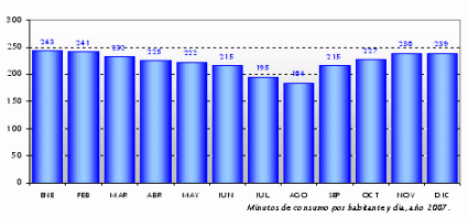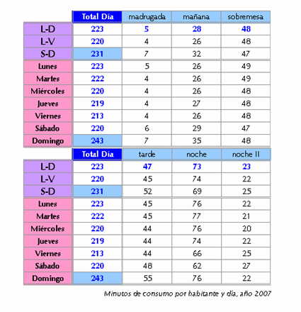 En cualquier caso, es necesario apuntar que en 2007 una media de 32,7 millones de personas contactaron con la televisión en cada jornada, produciéndose un promedio de consumo en cada una de ellas superior a los 286 minutos.