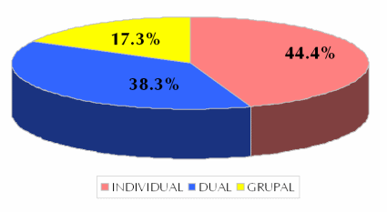 En lo que a tipo de visionado se refiere, el denominado "estudio de constelaciones", podemos afirmar que en 2007 el consumo individual vuelve a ser el mayoritario (44,4% de los minutos de visionado se consumen en solitario), pero pierde relevancia frente al consumo dual (38,3% del tiempo se ve en pareja). El consumo grupal (tres o más individuos frente al televisor) supone el 17,3% de los minutos de visionado.