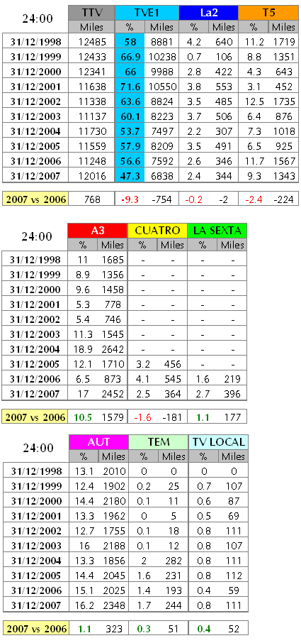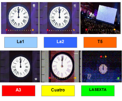 Con el 47,3% del total de la audiencia y 6,838,000 de espectadores, las campanas de La1 fueron las más vistas por los españoles el pasado 31 de diciembre de 2007.