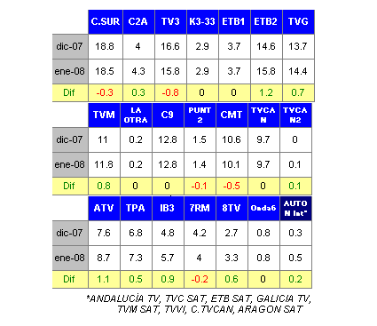 - 8TV, 3,3% (autonómica privada de Cataluña) firma un 3,3%, su mejor dato mensual