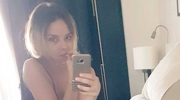 La cantante posaba en la cama de la habitación de una manera muy sexy, sin maquillar, con el pelo alborotado y un body negro. La cantante publicó la instantánea bajo la frase: "Mil vueltas y casi sin dormir, vaya noche de emoción. Y está noche #tour #soyhumana en #Badajoz 22:30 hrs #EscenarioAlcazaba vamos allá".