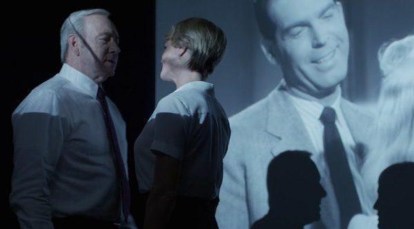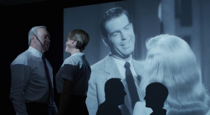 Tanto detalle y tanto guiño cinéfilo precisaba de una fotografía especial. En este sentido 'House of Cards' hace, una vez más un alarde de escenas enmarcadas en decorados que multiplican por diez el peso narrativa. Dos ejemplos claros son los planos en el kubrickiano despacho del gobernador Matthews o la escena de Francis y Claire con sus sombras cayendo sobre el proyector, en el que a su vez podía verse a Fred MacMurray y a Barbara Stanwyck.