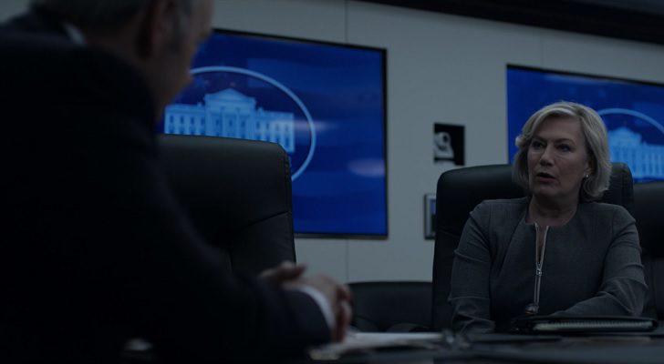 Lo mejor del episodio ha sido la estructura del mismo. La forma en la que se cuenta la estrategia de Claire y Frank sino que se muestra noticia a noticia, sobresalto tras sobresalto. Al final esto ofrece la posibilidad de mostrar la conversación entre los Underwood en la que ambos definen al votante, al ciudadano medio, como un niño incapaz de decidir por sí sólo.