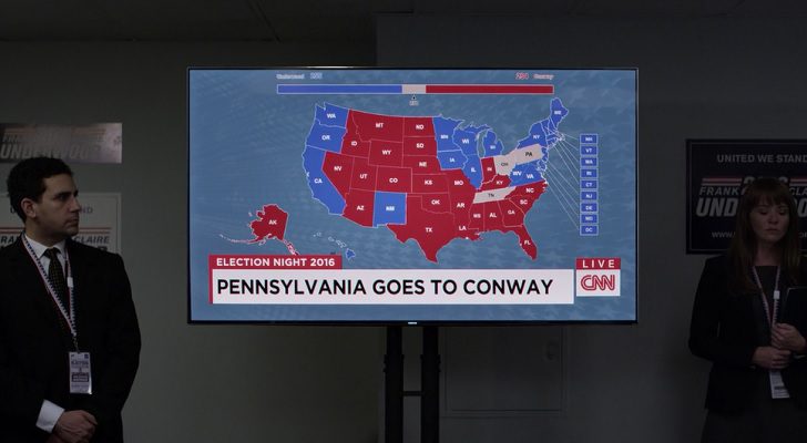 Al cierre de los colegios de la costa Este, empieza la noche electoral y el mapa de los estados de USA empieza a llenarse de más rojos que azules. Como se dice en estos casos, la tónica de la jornada es la normalidad hasta que se produce un "incidente" terrorista en Knoxville, Tennessee, vinculado al presunto terrorista del que había alertado la secretaria Durant. Frank parece manejar a su antojo el guión de la noche y se hace evidente al sonreírnos cuando, quizás, debería estar preocupado. El único que parece darse cuenta de lo que ocurre es Tom Hammersmith, que anda con la mosca detrás de la oreja aunque es incapaz de demostrar nada.
