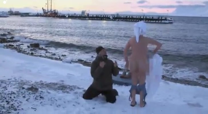 Pero al salir del mar, donde cualquiera hubiera deseado encontrarse arena de playa y 40 grados de temperatura, Mercedes se topó con 20 bajo cero y una alfombra de nieve que le sirvió para desfilar hasta el show final. Ni corta ni perezosa, la que fuera presentadora de 'Gran Hermano' durante 15 ediciones se quitó el bañador ante Calleja y todo el equipo de rodaje.