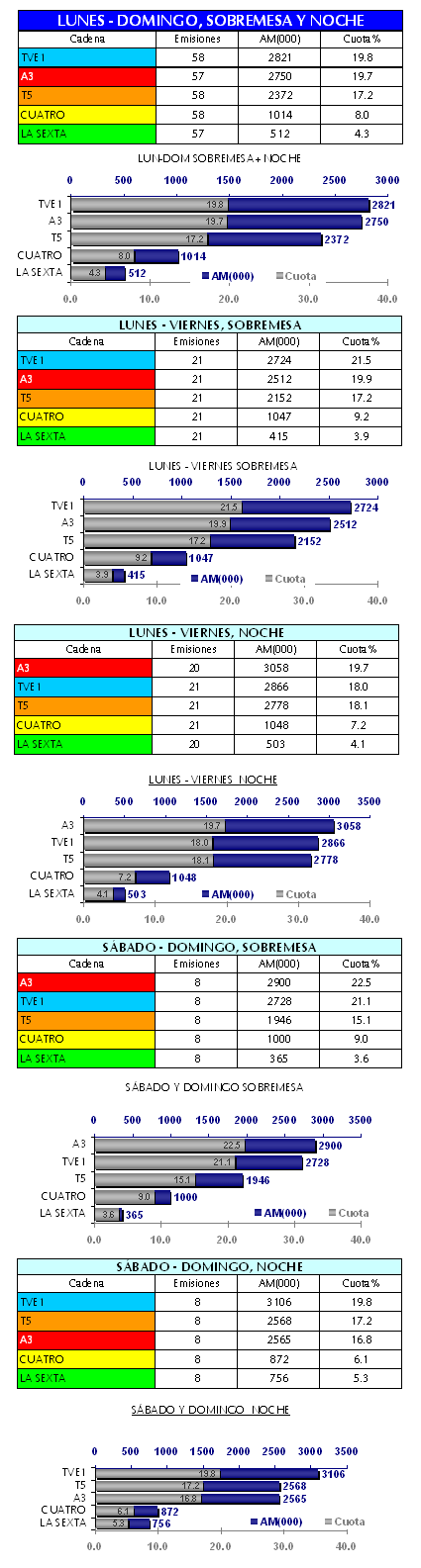 - Telecinco arrebata a Antena 3 la segunda posición en la noche de sábados y domingos.